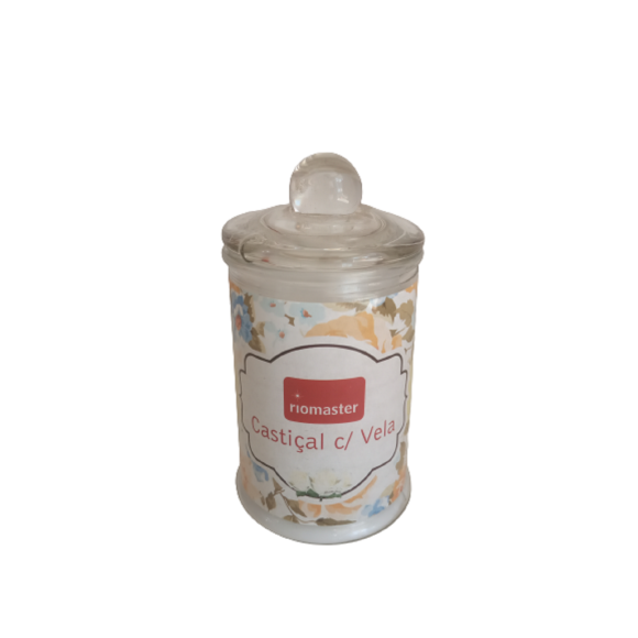 Castiçal De Vidro Com Vela Branca
