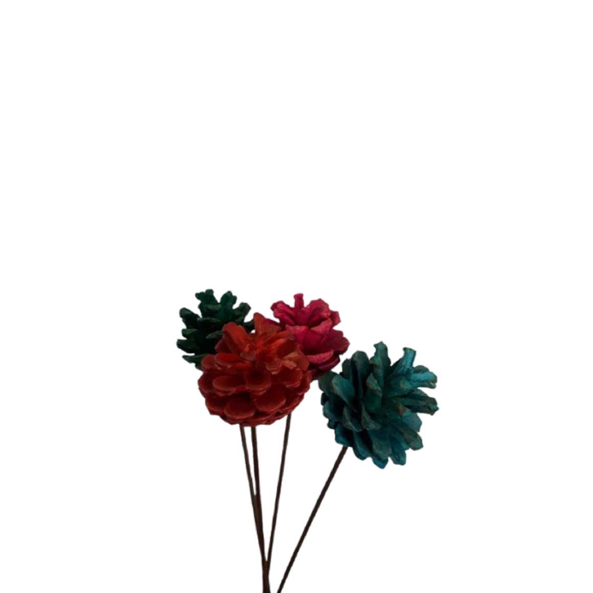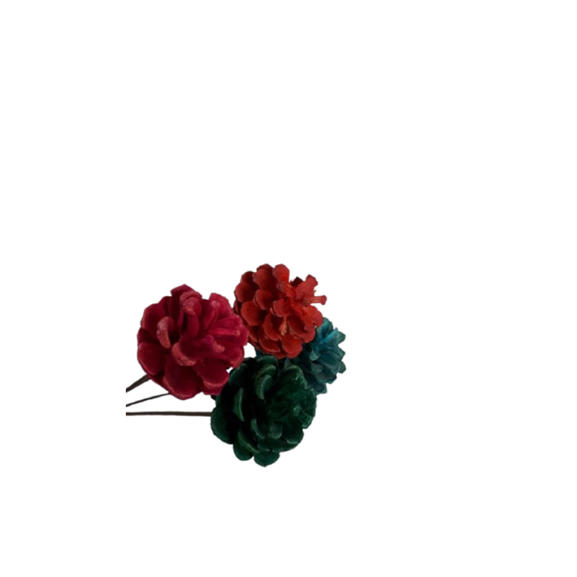 Pinha desidratada colorida, colada no palito.