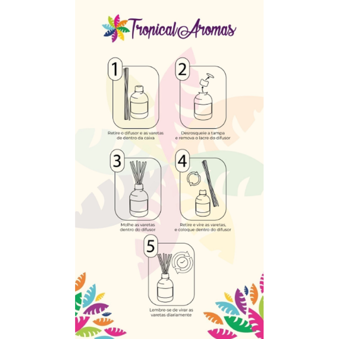 As varetas absorvem o líquido aromático e o liberam gradualmente no ar, mantendo a fragrância no ambiente. Conforme o líquido evapora, você pode inverter as varetas para intensificar o aroma.É importante lembrar que quanto mais você vire as varetas mais a fragrância se intensifica no ambiente.Recomendamos virar as varetas uma vez por dia.