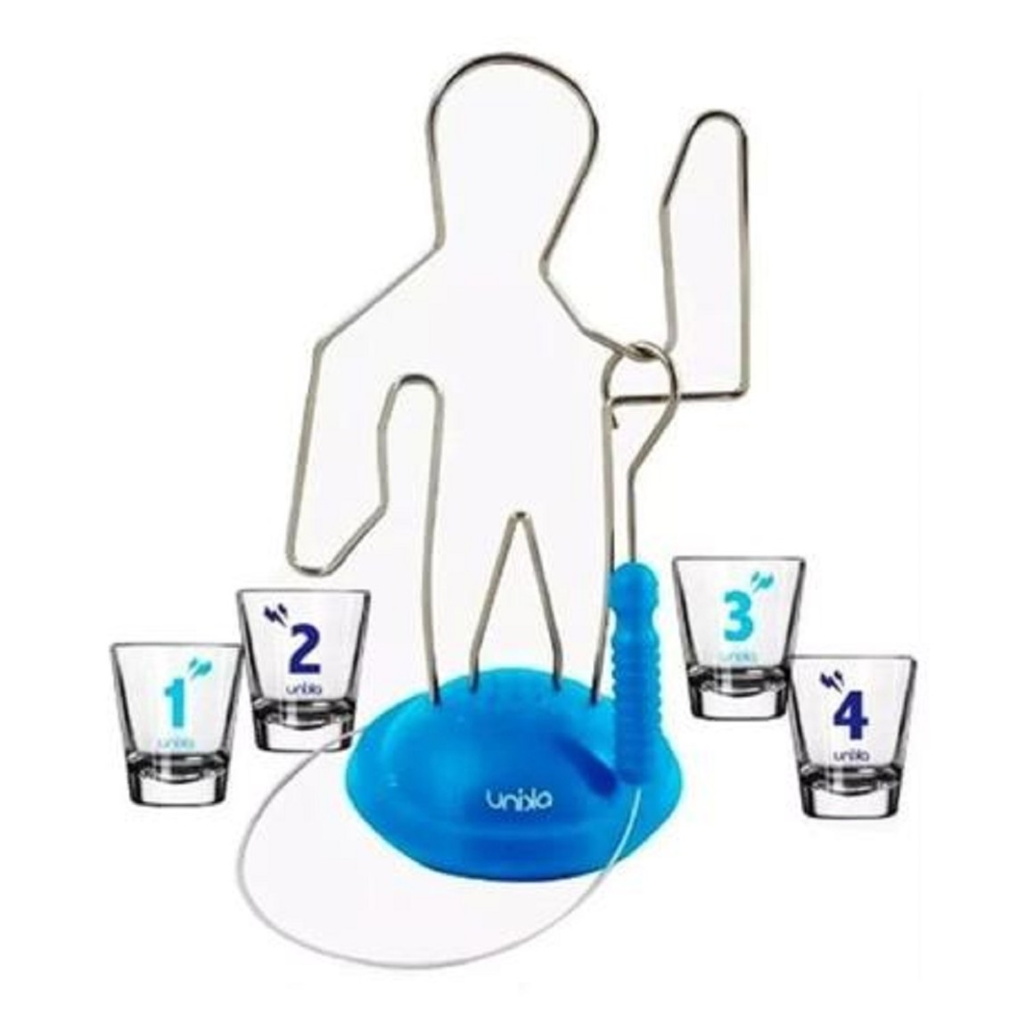 Nesse jogo tem que ter mão firme e concentração, objetivo é levar o gancho de um pé ao outro do buzz man sem encostar nele, se encostar buzz! Ele vai fazer um barulho e quem encostou deve tomar um shot de bebida então é a vez do próximo jogador.