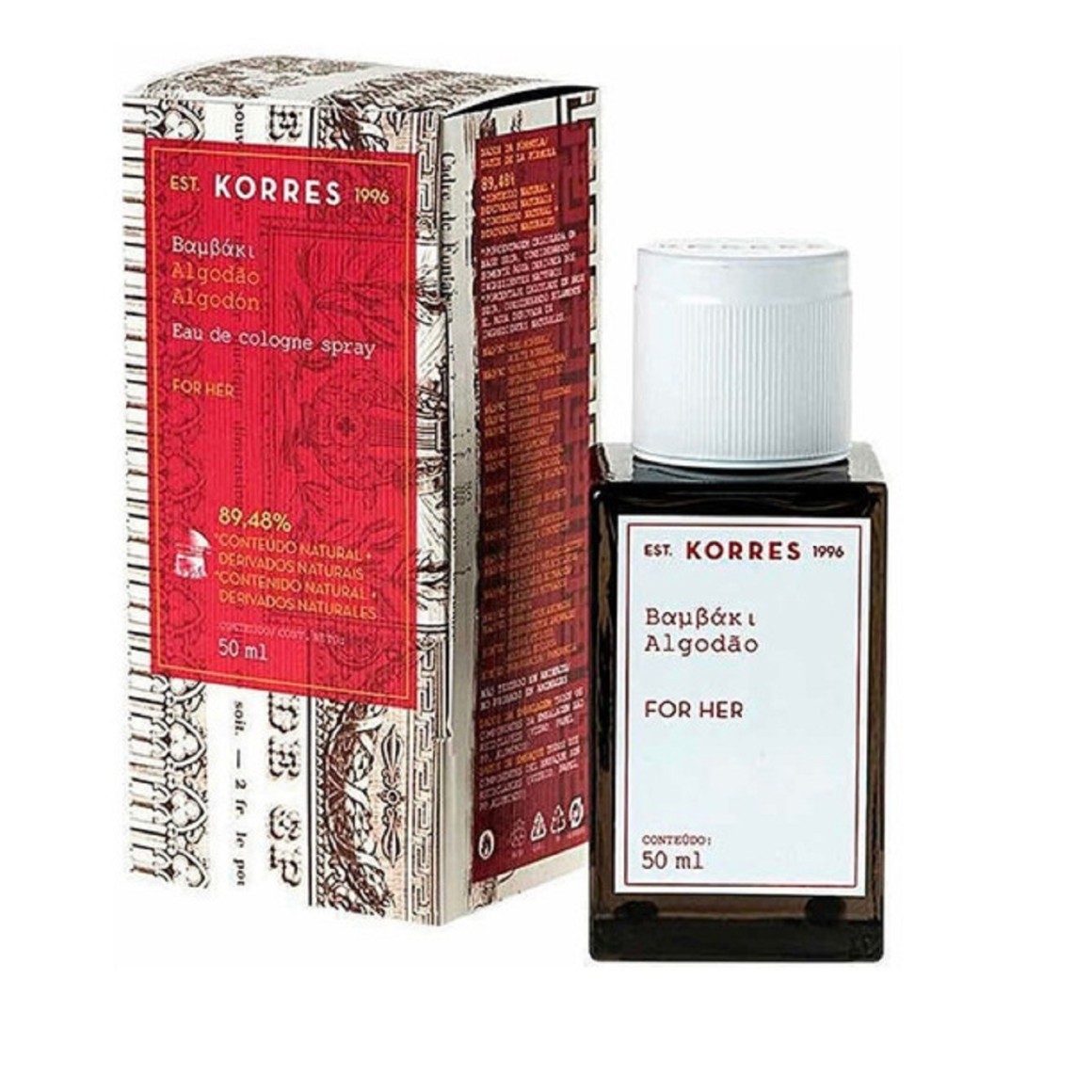 Algodão Eau de Cologne de Korres possui uma textura delicadas elegante e sensual assim como sua fragrância.Uma das plantas com aparência mais intrigante da natureza, o algodão possui uma textura delicada, elegante e sensual. Pois seu perfume é fresco e puro, um véu de fibras ricamente entrelaçadas, lembrando tecidos luxuosos. Benefícios:• Sem Óleo Mineral • Sem Vaselina/Parafina • Sem Silicones • Sem Parabenos • Sem Propileno Glicol• Sem Etanolaminas • Sem Polietilenoglicol• Sem Laurileter Sulfato De Sodio• Sem Laurileter Sulfato De Amonio• Sem Corante Sintético • Sem Ftalatos • Sem Almíscares Policíclicos• Sem Almíscares Nitrados • Sem Retinol• Sem Subprodutos Animais • Álcool Etílico • Fragrância •