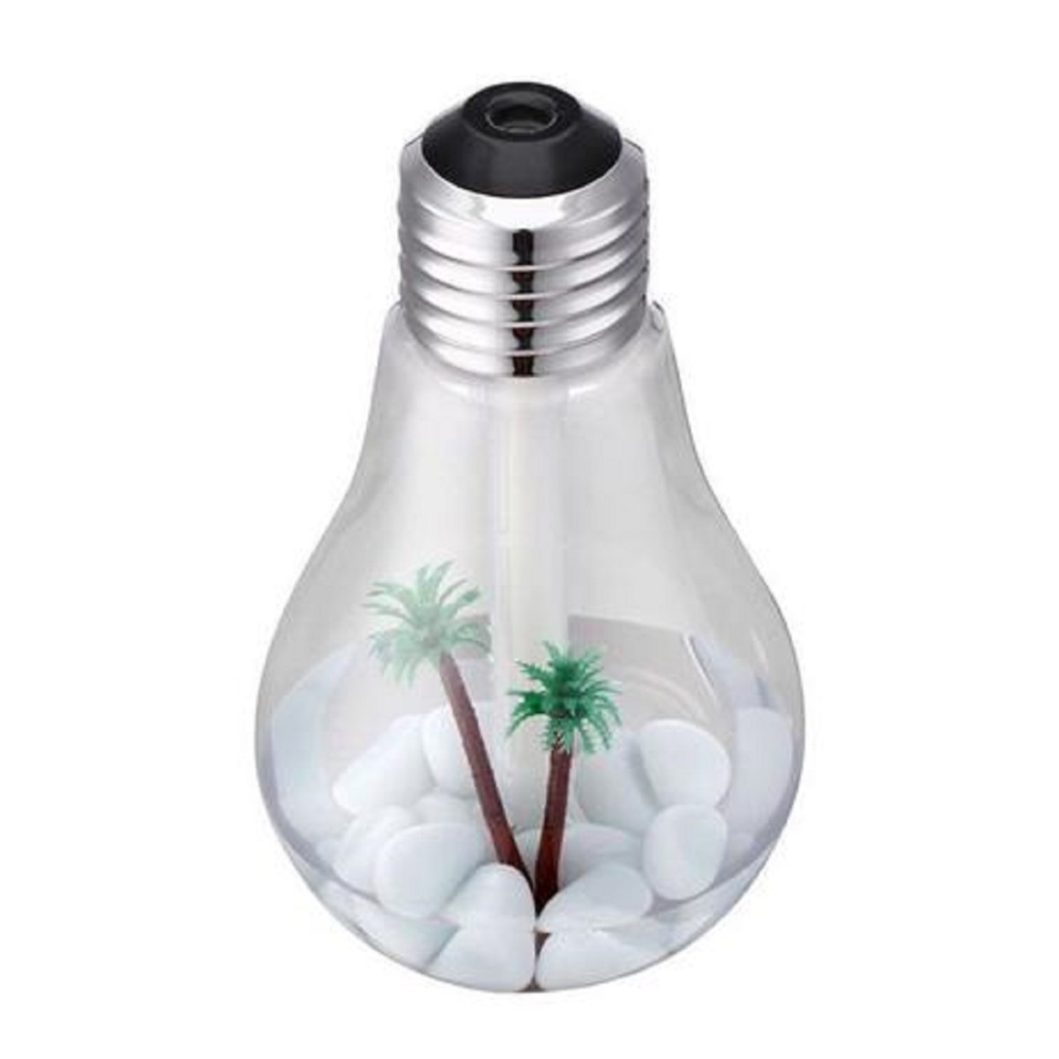Umidificador Lâmpada USB Led, com uma pequena praia dentro.
