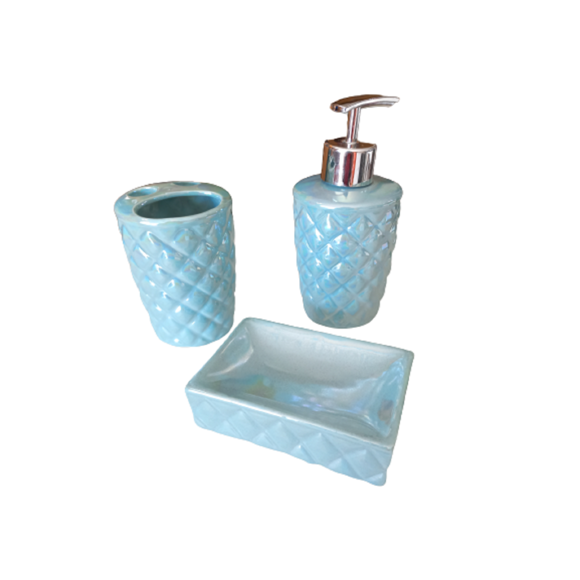 Kit Banheiro Lavabo Porcelana 3 Peças - Dispenser Porta Escova e Saboneteira
