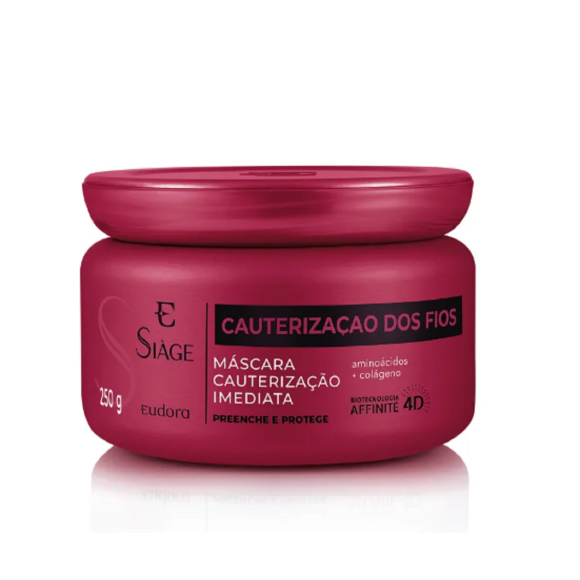 Máscara Capilar Siàge Cauterização dos Fios repõe a hidratação em 5 minutos e garante selagem imediata das cutículas para cabelos 3x mais macios.