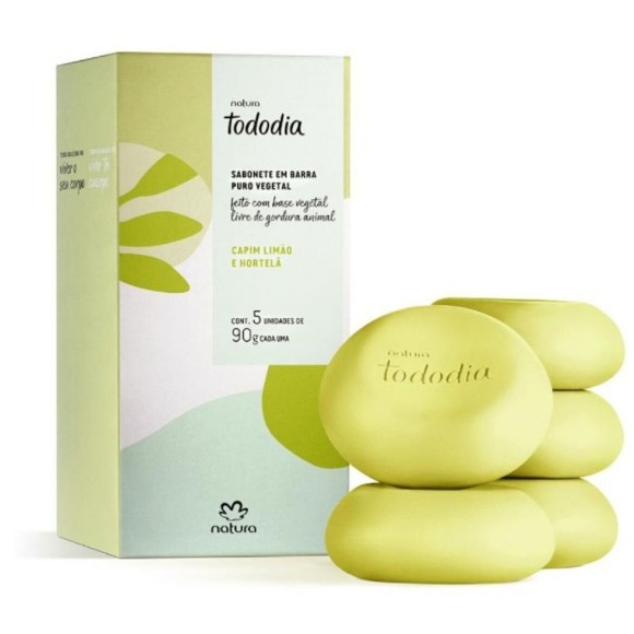 Sabonete Em Barra Puro Vegetal Tododia Capim Limão e Hortelã - 5 un de 90 g cada