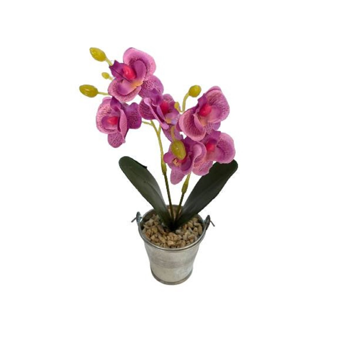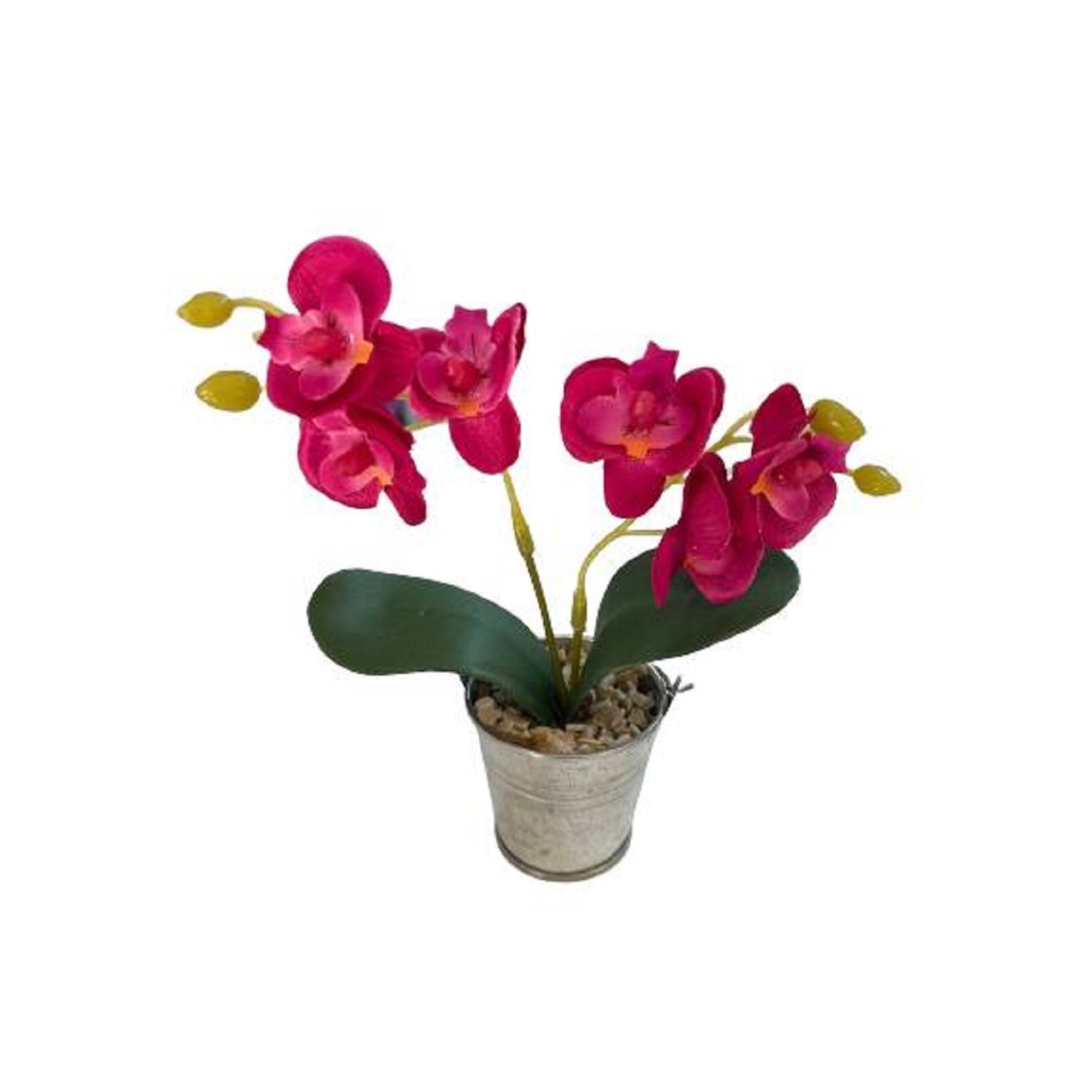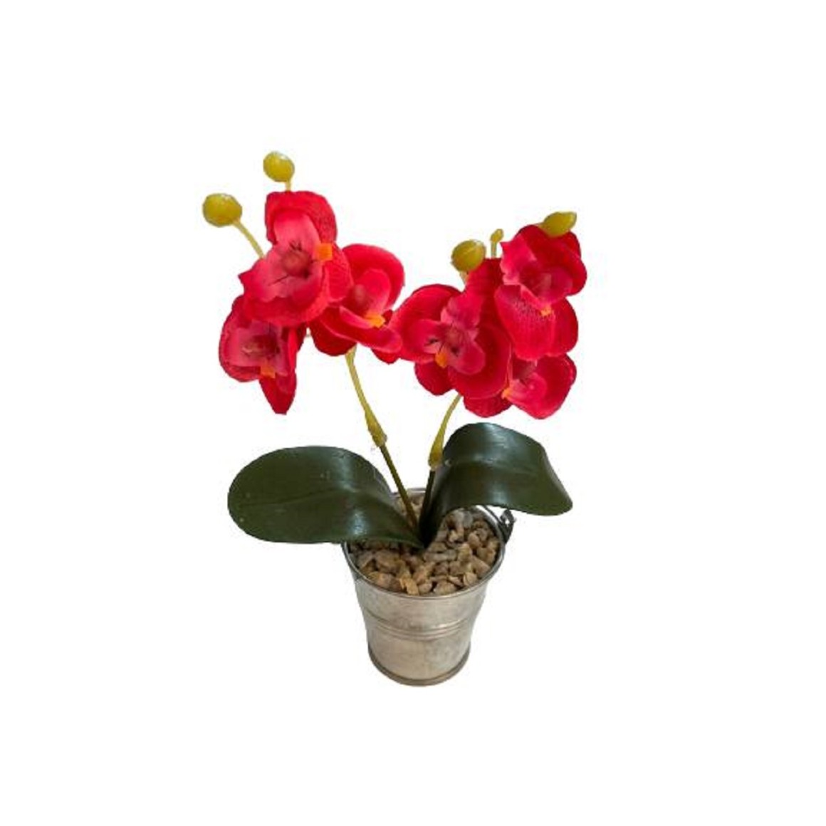 Material: Vaso de alumínio e flores de plástico.