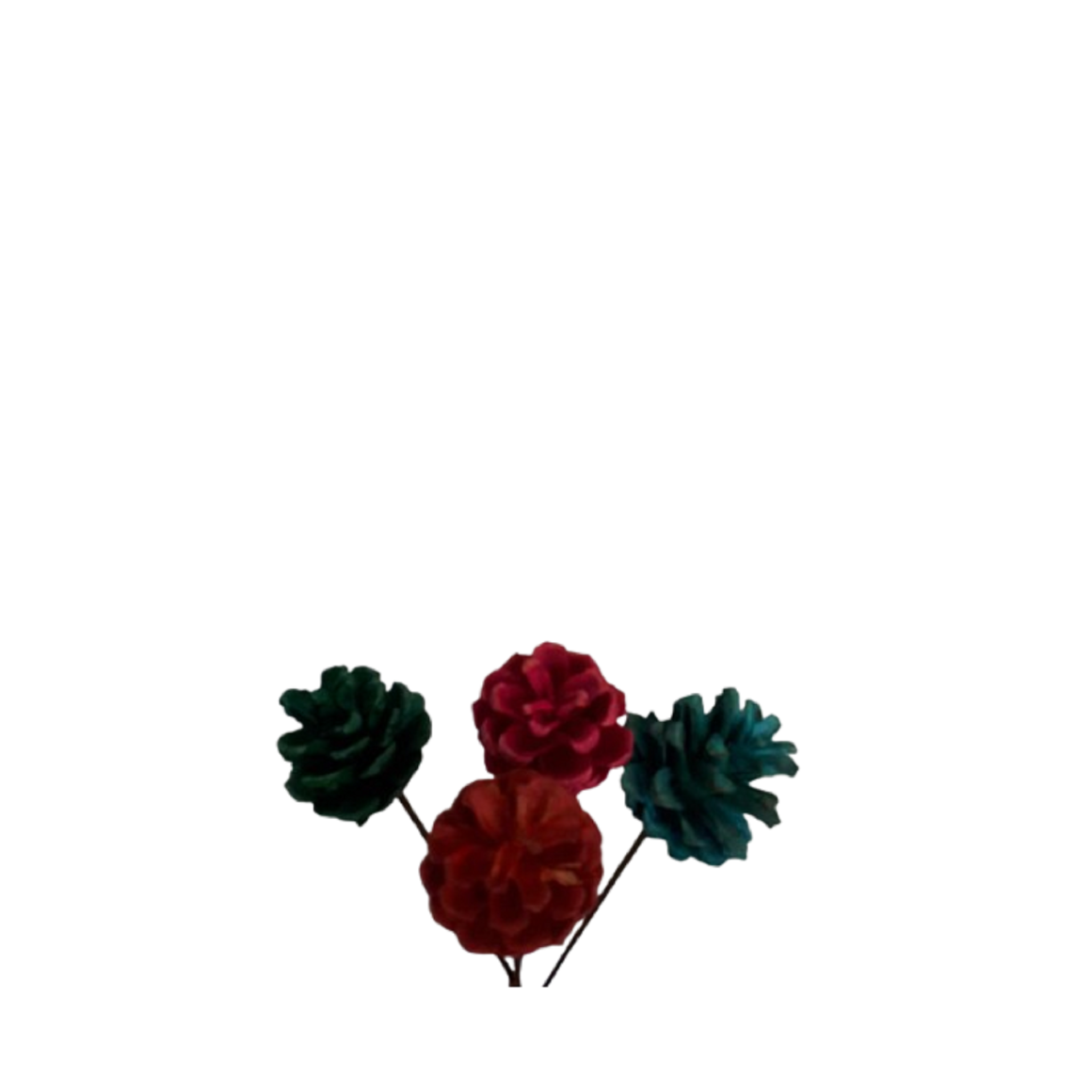 Pinha desidratada colorida, colada no palito.